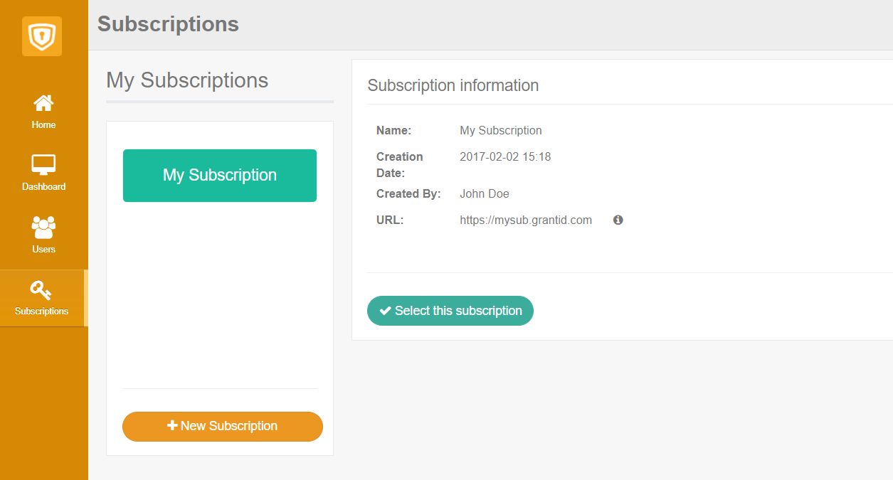 To continue click the "Select this subscription" button.